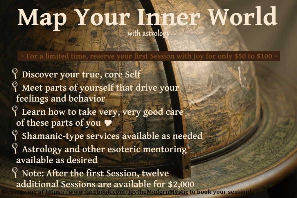 Interactive Video Reading: I’ll contact you at the email address you give during checkout. We’ll schedule a video call to go over your chart together, and afterwards I’ll send you a YouTube link to a recording of your reading. Only you can access it unless you give someone else the link. $200 for Natal or Composite Charts, $250 for Synastry Charts, or $250 for specialized, in depth Interception Readings. (Message me at https://www.facebook.com/JoytheModernMystic if you have any questions.)